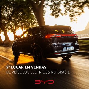 Dois de seus modelos comercializados no Brasil, o SUV TAN EV e o furgão BYD eT3 aparecem entre